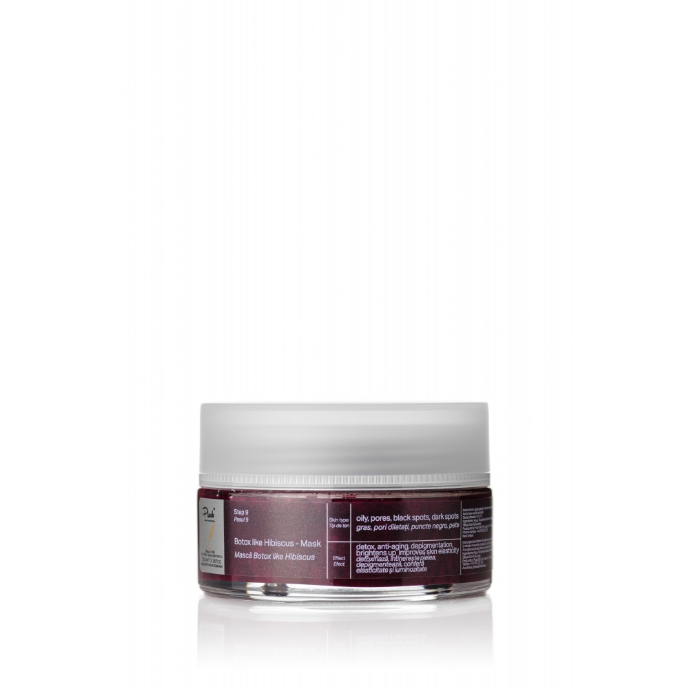 Mască Botox like Hibiscus detoxifică, îmbunătățește elasticitatea pielii, depigmentează, conferă  elasticitate și luminozitate. .